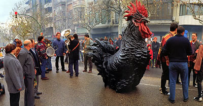 Per això, fa temps que defenso que seria interessant que progressivament les bèsties s’anessin incorporant a les pràctiques festives del moment de l’any que els hi pertoca. Independentment, o més enllà, de que també surtin a la processó del Corpus. D’aquesta manera dessaturaríem certes manifestacions festives que, amb tanta bèstia, semblen més un zoològic que cap altra cosa. Així, per exemple, els galls festius podrien acompanyar les captes i captiris infantils que aquests dies tenen en molts pobles i ciutats catalanes i també podrien sortir en altres manifestacions nadalenques, per allò de “Ara ve Nadal, matarem el gall…”. Segur que als nens els faria molta gràcia passejar pels carrers, bastons de fusta i cistells de vímet en mà, acompanyats d’un gall de cartró pedra o poliéster, mentre entonen les cançons tradicionals i van recollint el que la gent els dóna. I així, de pas, s’incorporaria un nou element a la festa que n’enriquiria la seva dimensió simbòlica.