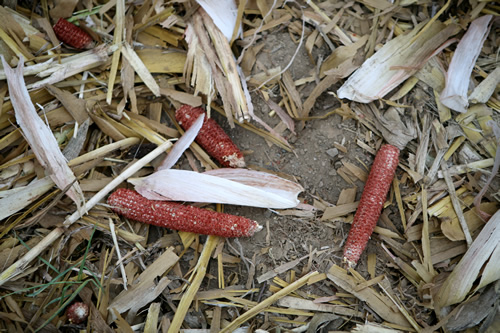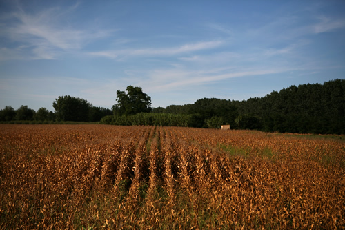 Una altra de les tasques que es comença a fer a mitjans de setembre i que dura fins a finals d’octubre és la collita dels camps de blat de moro. Una vegada passada la calor forta i amb el fruit ja desenvolupat, els camps es deixen de regar i s’espera que la planta i el seu fruit, la capsa o panotxa, s’assequin. Quan el gra de la panotxa adquireix el punt òptim de maduració es pren la decisió de fer la collita, el moment culminant de tot el procés.