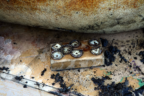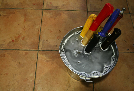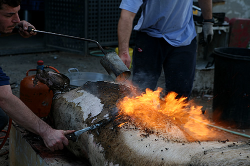 Un detall divertit: aquest és el raspall, de fabricació casolana, que fan servir per treure-li la pell cremada al porc una vegada se li ha passat la flama per segona vegada. Funciona la mar de bé, tant o més que les pedres de tipus volcànic, negres amb orificis que tradicionalment s’havien fet servir.