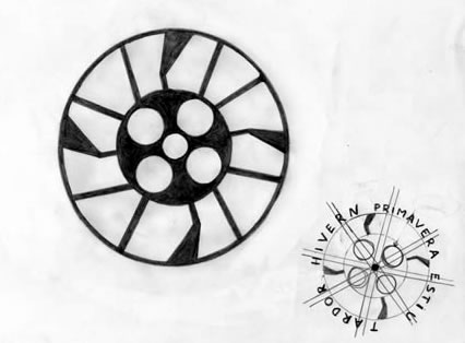 Des del recés forçós que implica iniciar una nova vida després de tancar-ne una altre, i amb l’ajut del fred que fot aquests dies, sembla que comença a bategar una nova idea. De moment, en deixo una primera aproximació gràfica. Un Sol, les fases lunars, una roda que gira i les quatre estacions. A veure com evoluciona la cosa…