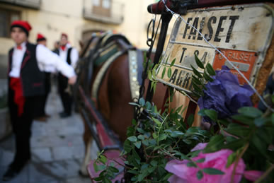 L’A és la metxa del coet. Organitza, comunica i, sobretot, viu la festa. Ell s’ocupa dels detalls. I els detalls, en les festes són molt importants. Ens guia, ens truca a cada instant per saber on som. No vol que ens perdem detall de res. Fem broma amb ell i li diem que el fitxarem per ser el nostre director. Estic segur que amb ell les coses ens anirien millor. La família de l’A són com ell. Ens obren les portes de casa seva de bat a bat. L’A ha de ser a tot arreu: coordina les activitats de tothom. Els dies abans parla amb els mitjans que truquen i els explica la festa per telèfon. La nit de la vigília surt amb un carretó, acompanyat per sa filla i alguns companys, per pintar els ferros del clavegueram per tal que els cavalls no s’espantin. Neteja el seu matxo i prepara el carro familiar. I surt al bosc a fer verd per guarnir-lo. I sobretot, una cosa que vol que gravem si o si, ell és qui controla que els vestits dels participants siguin els correctes, l’acordat per participara la festa i no dubta en acarar-se amb duresa amb els que li intenten justificar el seu descuit. Els vestits de l’Encamisada són part de la clau de l’èxit. El que fa que llueixi especialment. Davant la càmera, la passió de l’A és l’energia que el converteix en actor. Tot el contrari que la seva filla, bessona de l’A petit, que sempre s’amaga quan ens veu.