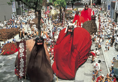 Automàticament he pensat amb en Ramon. He fet una rudimentària foto amb el mòbil i he anotat el nom del poble i el nom de la festa on surt aquesta bèstia: “Uwajima, Ushioni”. Ara, en tornar a casa he completat la recerca via web, posant-hi aquestes paraules. Així he pogut millorar el coneixement inicial. Tot i que no he pogut dedicar-hi massa temps, he après que l’Ushi-oni, que jo em pensava que era el nom de la bèstia, és més aviat el nom genèric d’aquest animal mitològic (una denomnació tipus “drac” o “guita” en japonès), i d’aquí que si es posa aquesta paraule en el Google surtin moltíssimes bèsties més. Evidentment, si en comptes de posar “Ushi-oni” es posa el seu corresponent mot en japonès: 牛-鬼 , els resultats són encara millors.