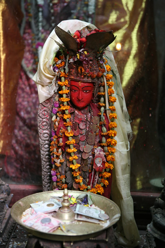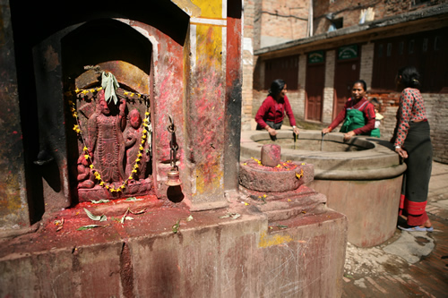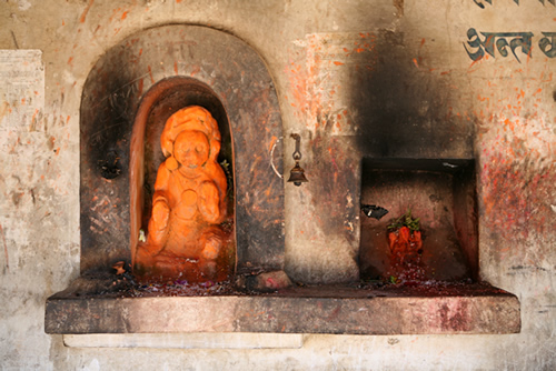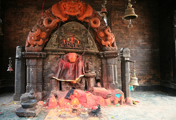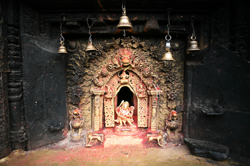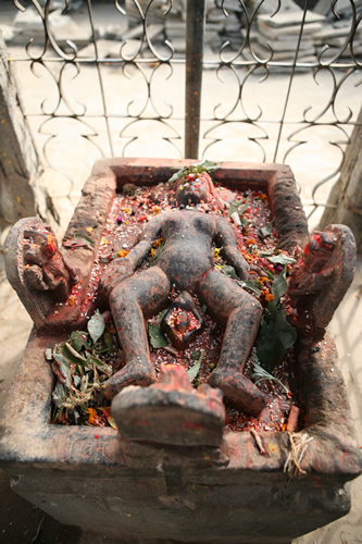 (Les imatges van ser preses l’any 2007 i són de capelles i temples hinduistes del Nepal, concretament de les ciutats de Thimi, Baktapur i Kathmandú. Les fotografies mostren un aspecte insòlit d’aquestes imatges: estan soles, sense gent al seu voltant. I és que normalment els temples i capelles de carrer hinduistes són plenes a vessar de persones que s’hi acosten per obtenir darxan).