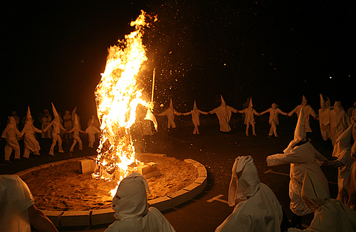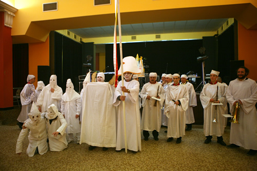 Els Gregoris és una tradició curiosa i força misteriosa. Es tracta del darrer acte de Carnaval als Banys d’Arles i consisteix en l’exhibició i crema d’una espècie d’efígie. Pel seu significat -i pel nom dels personatges- sembla que està relacionat amb el papa Gregori el Gran, el que va imposar la celebració de la Quaresma. I en canvi, per les seves formes – el color blanc de les caperutxes, les túniques blanques i l’enginyós entremès del difunt-, sembla que podria ser una processó d’enterrament. Com és habitual en quest casos, els participants no saben d’on ve allò que fan ni què significa (i a més a més ni els interessa perquè ells només volen passar-s’ho bé seguint una tradició pròpia). Tanmateix, vam recollir les dues versions que circulen per tradició oral: que és una paròdia de la processó del sant enterrament i que és una paròdia del Kukux-Klan. Avui m’he passat la nit cercant què diuen alguns dels llibres de folklore que tinc a casa i, tot i que no hi ha res gairebé escrit, miraré de fer-ne una aportació pròpia, aviam si me’n surto…