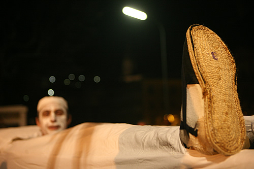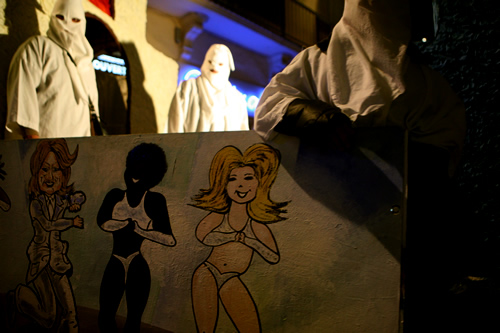 Però aleshores, quan va caure la nit, de la mà de’n P i els seus companys, ens vam adonar que no. Que hi ha gent als Banys que es mou, que crea, que té una cultura pròpia i singular i que, a més a més, són més que hospitalaris amb els catalans del sud que, com nosaltres, havíem arribat fins allà per veure i conèixer la festa. En P és el capità de la Comissió de Festes, un grup d’unes deu persones d’entre quaranta i cinquanta anys que ha recuperat la tradició dels Gregoris, exclusiva dels Banys d’Arles. Ens van convidar a sopar amb ells i vam poder seguir tot el procés mentre canviaven de personalitat i es vestien per executar alguns dels entremesos que, hores més tard, desfilarien pels carrers del poble.