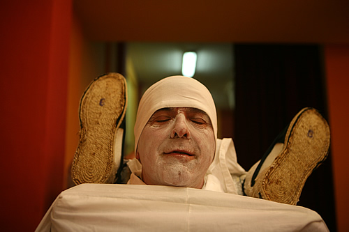 Mentre dinàvem en una de les terrasses d’un carrer, ens va envair una idea estranya: que aquell era un escenari sòrdid, decadent. Potser pel fet de ser temporada baixa a les termes i no haver-hi massa gent pels carrers. Potser per sentir la presència de molta gent malalta que era al poble per guarir-se. O potser, senzillament, per trobar-nos en un d’aquells moments de silenci caut pero inquietant que es produeixen sovint als pobles les hores abans de passar-ne una de grossa. La calma tensa que precedeix a la festa tumultuosa.