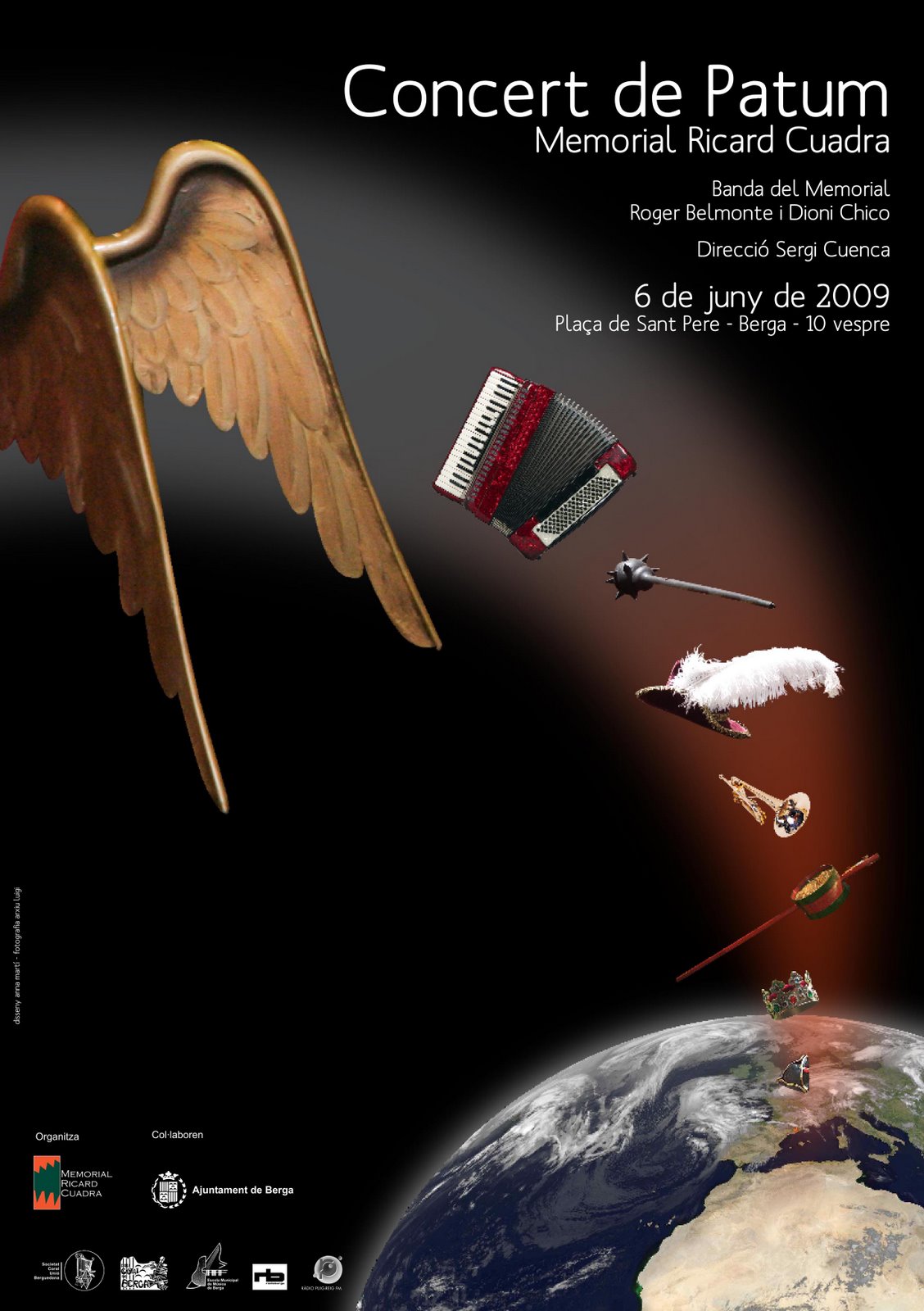 Anit al C.A.T una formació de banda d’unes cinquanta persones van empetitir l’auditori del C.A.T, un indret que em temo que, si la cosa segueix creixent, deixarà de ser l’escenari de posteriors edicions del concert en benefici d’espais més apropiats, com el Palau de la Música. Hi havia un ambient especial, impropi d’un concert de banda convencional, però totalment adient per fer notar als despistats que tot allò prové d’una tradició popular: un ambient festiu, amb l’immens tabal presidint la cerimònia, una bóta de vi que anava passant entre mans i un fi d’audició en què músics i públic es van unir. La primera part del concert va ser magnífica: quatre músics amb acordió, juntament amb d’altres instruments de la banda van fer una interpretació lliure de les músiques de la Patum. Impressionant. Veure com es pot convertir una partitura de banda en un mambo o en una peça de jazz delata el talent d’un bon músic. Però encara reconforta més saber que es té el coratge d’agafar la tradició com a punt de partida, per reinterpretar, estirant o retallant per aquí, afegint per allà, lliurement, per crear tota una altra cosa, sorprenent, fresca. Algunes melodies estaven tant reinterpretades que en alguns moments era molt difícil poder identificar si es tractava del Ball de l’Àliga, la Gaita Gallega o d’un Tirabol. Però al final sempre es podia endevinar de quina partitura tradicional provenia la peça.
