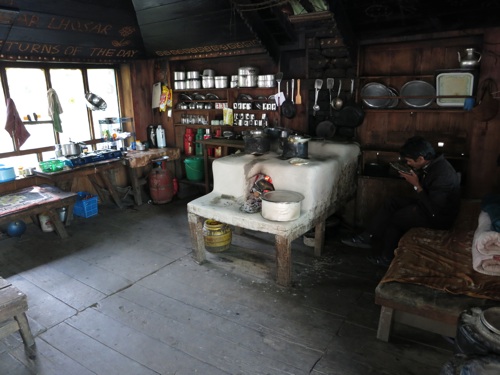 A les muntanyes la cuina és senzilla, rude, sense massa elaboració. Sembla ben bé feta simplement per satisfer les necessitats més primàries i no pas per satisfer els capricis del paladar i el gust. Sembla com si la vida de subsistència, – com ho és la dels que viuen a les muntanyes nepaleses-, no hagi deixat lloc per a l’elaboració de plats cuinats a foc lent durant hores. I això que a les muntanyes les cuines són fetes amb pedres recobertes d’argila i es cuina amb foc real.