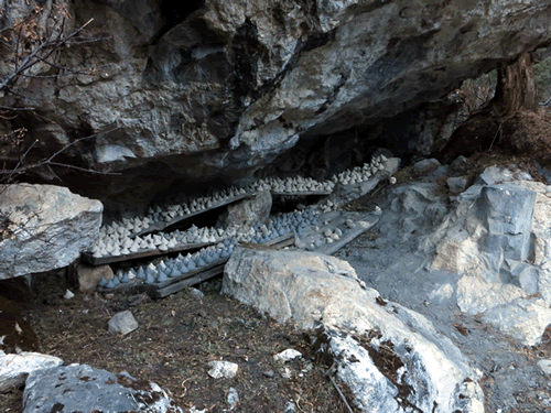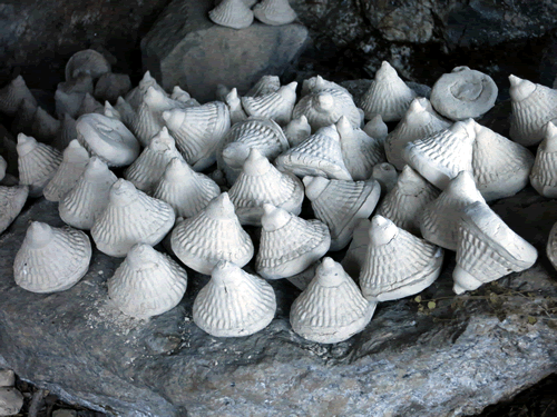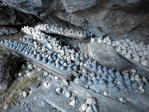 Els familiars del difunt busquen aleshores un lloc sec i net, -amb “nimbus”, aureola-, per deixar-hi alguns dels 108 tsa-tsa. Tanmateix, el costum és no deixar mai tots els tsa-tsa al mateix indret, sino que es reparteixen entre diversos llocs. Així, els familiars deixen tsa-tsa sobre “txortens” (monuments que marquen el terme d’un poble), sobre parets de les “gompas” (les esglésies) o monestirs, i especialment als peus d’indrets naturals com coves, fonts i pedres o arbres. Els tsa-tsa que vam veure nosaltres, les que apareixen a les fotografies i que han originat aquest post les vam veure sota una gran roca.