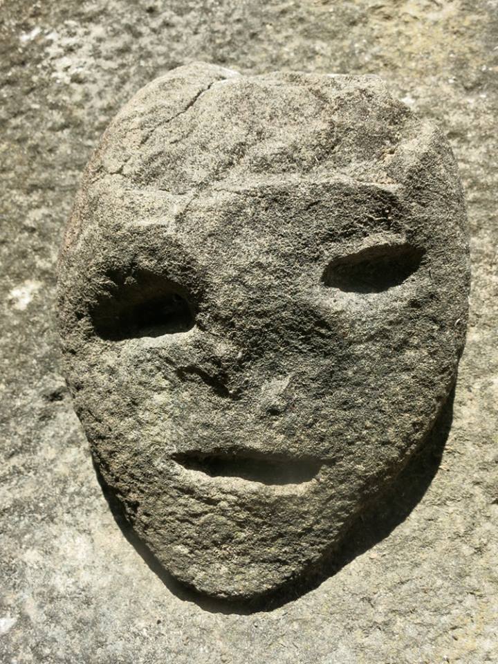 De fet, encara ara no en tinc ni idea de què pot ser. Primer vam pensar que la cara potser havia estat un divertimento dels habitants de la casa que, un dia avorrits, l’havien esculpida. També vam pensar que potser senzillament una marca de propietat de l’indret.