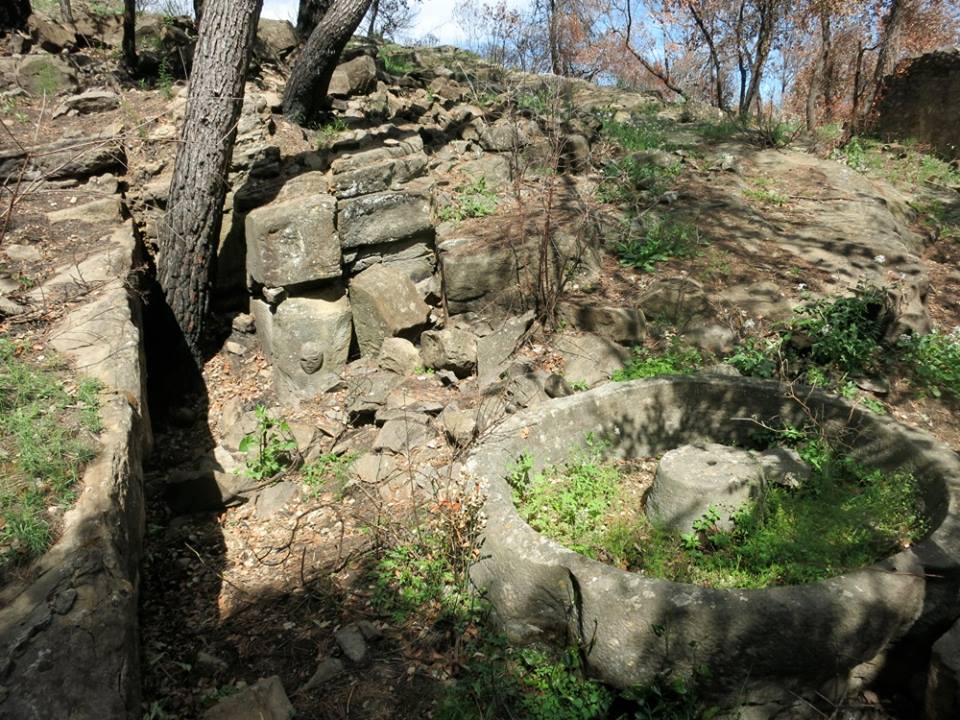 Hi vam enfilar, com dos nens petits descobrint món i, darrera la casa, vam veure una cosa estranya. En una roca vertical de darrera, al costat d’una espècie de gran roda de pedra, hi havia una cara esculpida. No ens ho podíem creure… què era allò? L’endemà hi vam anar amb els amics i en V, historiador de Verges, que tampoc en sabia res. Més tard, en Badia ens va dir que aquell mas abandonat si que el tenien identificat, però que no en sabia res més.