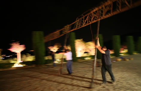 El vam ajudar a muntar el castell de focs mentre ens explicava curiositats d’aquest aspecte del seu negoci. En aquests espectacles, ens digué, el pirotècnic és més electricista que cap altra cosa. A mi, personalment, el castell de focs no em va agradar gens ni mica, el so em semblà massa enllaunat. Ara bé, entenc perfectament que als nuvis ja els serveixi per aconseguir l’efecte que busquen… i que per a l’empresa pirotècnica li suposi uns bons ingressos per una nit de feina.