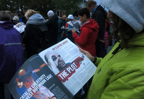 Llegint la premsa abans de l’actuació a Ümea. Foto: Manel Carrera