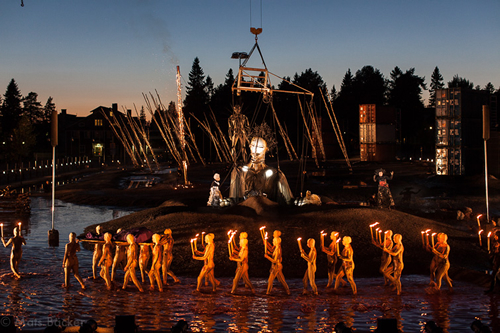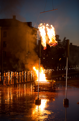 La meva amistat amb en CP, un dels directors de La Fura amb qui vaig tenir la oportunitat de col·laborar entre el 1999 i el 2001, m’ha permès seguir d’aprop – tot i que menys del que voldria- les seves produccions. Amb en C ens uneix una bona amistat, farcida d’aventures barcelonines de final de mil·lenni i d’estima pel Nepal, on ell va adoptar les seves dues filles. L’any passat en C em va trucar per dir-me que havia introduit el foc en un dels seus espectacles i em va convidar a anar a Ümea (Suècia) on estaven representant Elektra, una macroproducció operística. En arribar a aquesta ciutat em vaig adonar de la sacsejada i la impressió que va produir l’espectacle en els que el van poder veure. Els diaris parlaven de “catalan creativity” i el poble n’anava ple. A la gent els canviava la cara quan els dèiem que érem allà per l’Elektra de Richard Strauss vist per la Fura dels Baus.