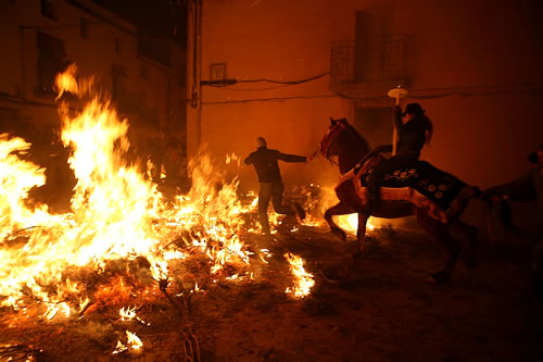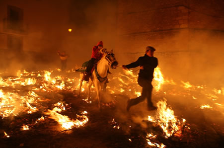 Hi ha, especialment mentre dura la “matxà” (nom popular amb què es coneix la correguda de cavalls i persones pels carrers encesos) una sensació de perill ben real. I és que aquesta és una d’aquelles festes en què el perill està sempre ben present. Hi ha un risc evident, però això forma part substancial, indestriable d’aquesta celebració. De fet, n’és un dels seus elements constitutius. Qui vol salta el foc, i qui no se’n situa al marge. Però és quasi impossible quedar-ne fora perquè el foc abasta molts carrers del poble. És a dir que o hi entres del tot o millor que ni hi vagis. I si entres, que et quedi clar que “si no vols pols, no vagis a l’era”, que diu el refrany. Perquè pots prendre-hi mal sinó segueixes alguns consells importants: esperar a que el foc baixi d’intensitat abans de saltar, no caminar mai cap enrere, no travessar el foc des de l’altra banda, estar pendent d’on són sempre els cavalls, no anar descontroladament begut, etc. No fos cas que, amb aquesta paranoia de la seguretat que afecta al món modern, acabessin també per voler regular-la.