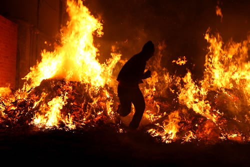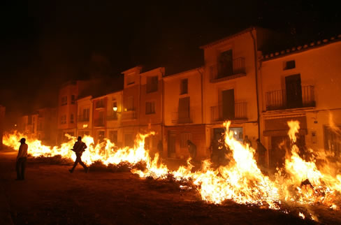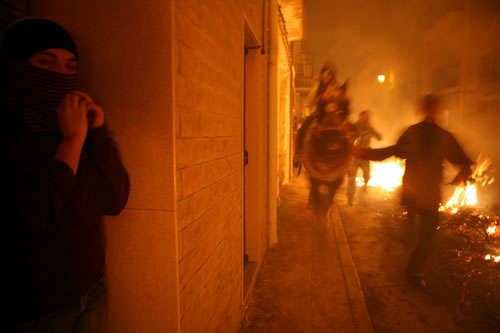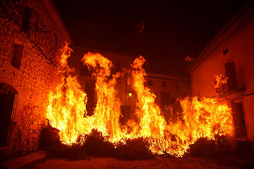 Durant unes hores, hi ha foc, molt de foc, i també molt de fum, molt de fum, i una escalfor infernal, la majoria de vegades impossible d’aguantar. Expliquen els avis del poble, però, que antigament la festa encara era molt més sonada, més salvatge, i que hi havia molt més foc. Els carrers respiren desordre en estat pur, corredisses amunt i avall, escenes de pànic a cada cantonada, i molts rostres amb la cara tapada. I molta solidaritat entre els participants. Un cop s’encén el poble per una punta, el foc, el fum i l’olor de l’argelaga encesa van impregnant tots els racons del poble i van penetrant, lentament, tots els racons de l’ànima.