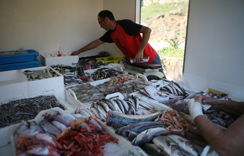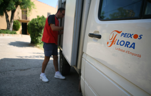 Comprat el que volia, ens posem a xerrar una estona. M’explica que amb aquest furgó frigorífic, perfectament equipat, fa un recorregut establert dos dies per setmana, els dimarts i els dijous al matí, pels pobles de segona línia de mar, pobles petits en els que ni tant sols hi ha una botiga o un establiment de serveis, per a vendre-hi el peix. Només s’està entre deu i vint minuts en cada poble i sovint o bé a la plaça major o bé directament davant d’on hi viuen els seus clients fixes habituals. Em diu que abans també tenia una peixateria a la Bisbal, amb cinc persones treballant-hi i que, per motius de salut, va haver de tancar-la. Ara només té aquest negoci ambulant, que funciona sobre la base de que el que es mou és el venedor, no el comprador. En alguns pobles hi té clients fixes, persones que sap que, si hi va, sempre li compraran alguna cosa, i en d’altres hi té clients esporàdics, gent que només compra peix de tant en tant i que veuen l’arribada del peixater com una oportunitat de fer un dinar diferent. Molts dels seus compradors són persones grans, a qui ja els costa desplaçar-se fins un nucli urbà per anar a mercat.